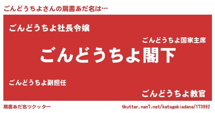 | 女子向けラノベタイトル風あだ名 | 『ごんどうちよなんてお断りですっ。』 |