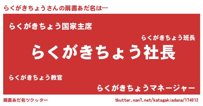| 胡散臭い通販商品みたいなあだ名 | 『億万長者になれるブレスレット…その名も「らくがきちょう」』 |