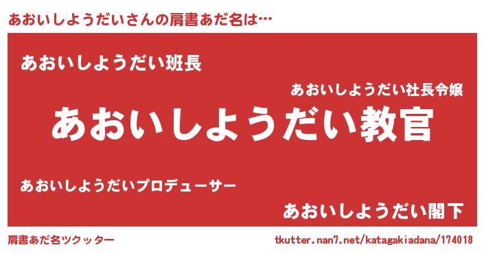 | 意味不明あだ名 | 『住所不定無職あおいしようだい(4歳)』 |