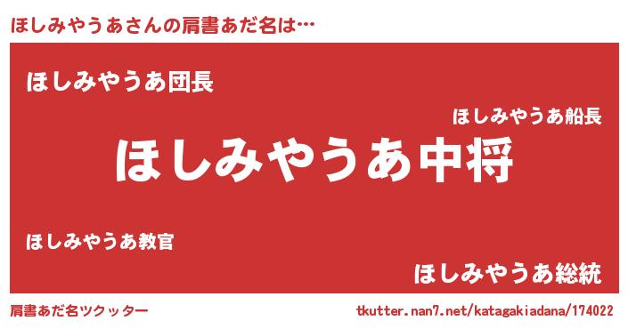 | 男性向けラノベタイトル風あだ名 | 『転生したらほしみやうあだった件』 |