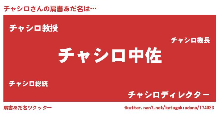 | ヘコむあだ名 | 『チャシロ(笑)』『チャにー』 |