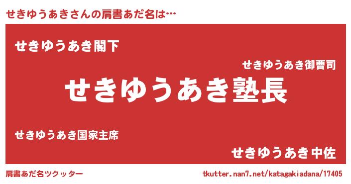| ポケモン風あだ名 | 『ヒセキユウアキ』『セキセウス』 |