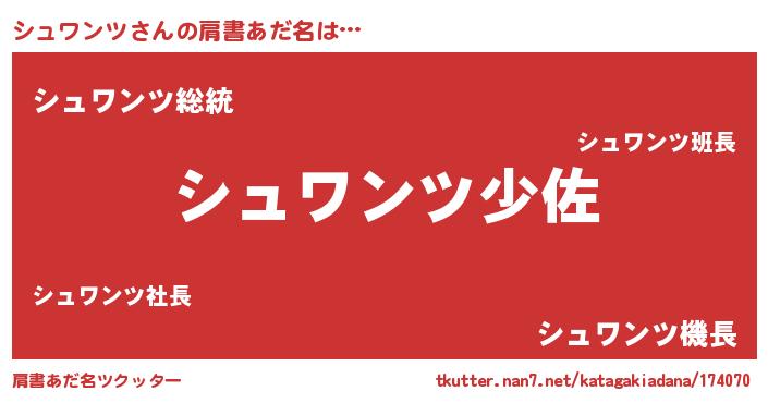 | ピコ太郎風あだ名 | 『シュ太郎』『シコ六郎』『ピシ八郎』 |