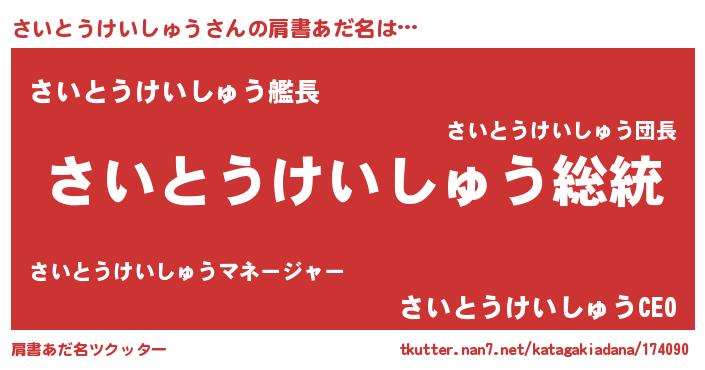 | 意味不明あだ名 | 『自称さいとうけいしゅう』 |