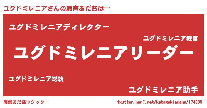 | 欧米人風あだ名 | 『ウサインユグドミレニア』 |
