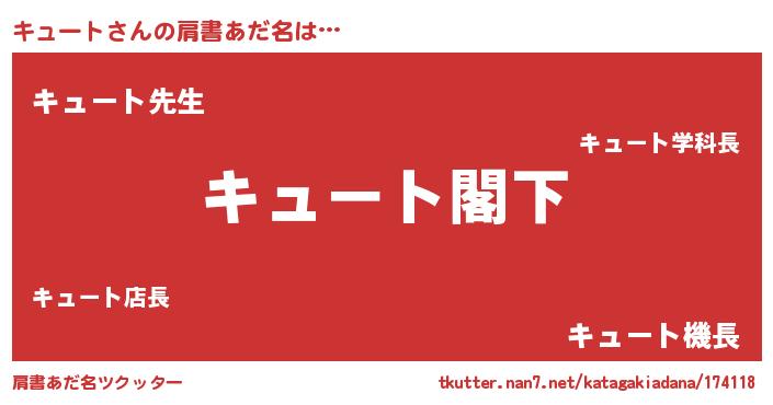 | 意味不明あだ名 | 『自称キュート』『永久保存キュート』 |