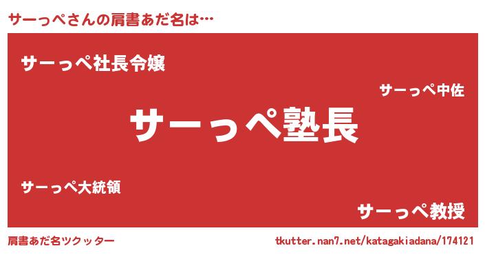 | ピコ太郎風あだ名 | 『サー四郎』『サコ六郎』『ササ太郎』 |