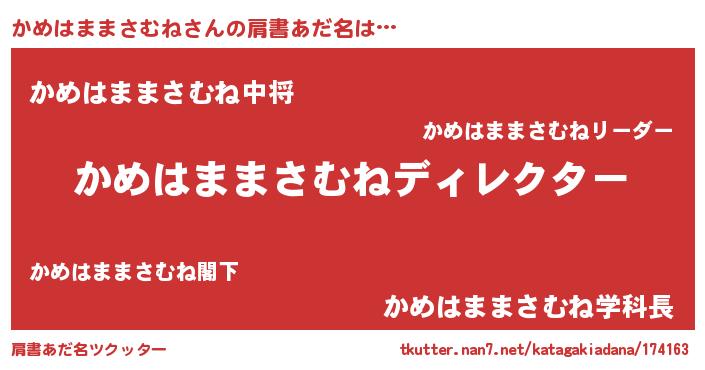 | 欧米人風あだ名 | 『アンジェラ・かめはままさむね』 |