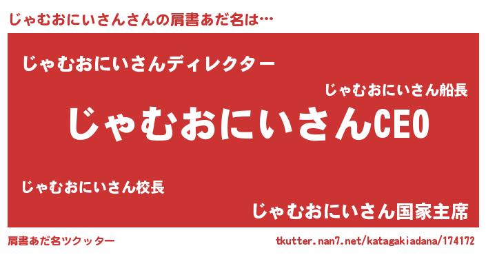 | 男性向けラノベタイトル風あだ名 | 『じゃむおにいさんの憂鬱』 |