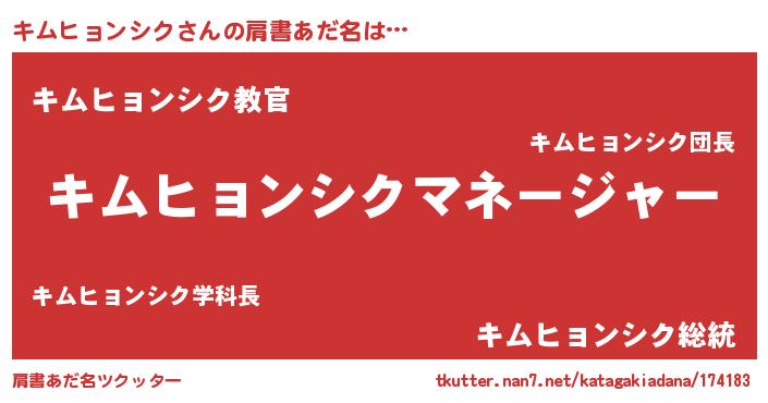 | 女子向けラノベタイトル風あだ名 | 『首の姫と首なしキムヒョンシク』 |