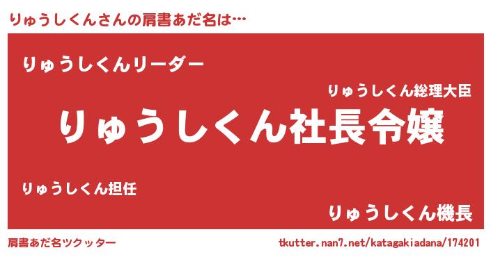 | 男性向けラノベタイトル風あだ名 | 『りゅうしくんの憂鬱』 |