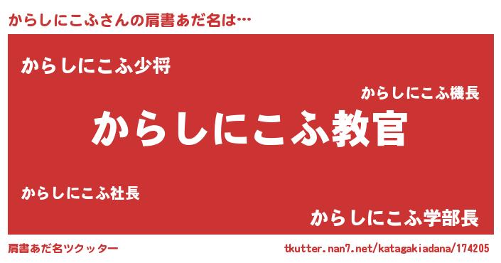 | ピコ太郎風あだ名 | 『カカ太郎』『カコ五郎』『カラ十郎』 |