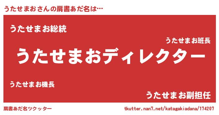 | 男性向けラノベタイトル風あだ名 | 『うたせまおに滅ぼされるだけの簡単なお仕事です』 |