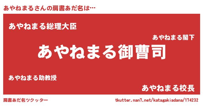| 胡散臭い通販商品みたいなあだ名 | 『億万長者になれる霊験あらたかなお札…その名も「あやねまる」』 |