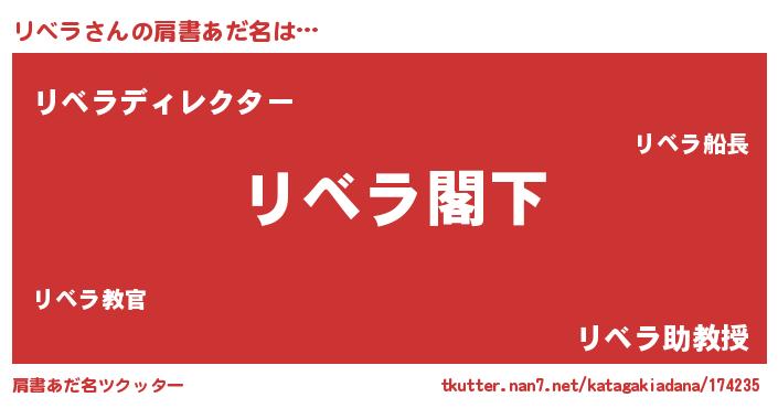 | 男性向けラノベタイトル風あだ名 | 『Re:リベラから始める異世界生活』 |
