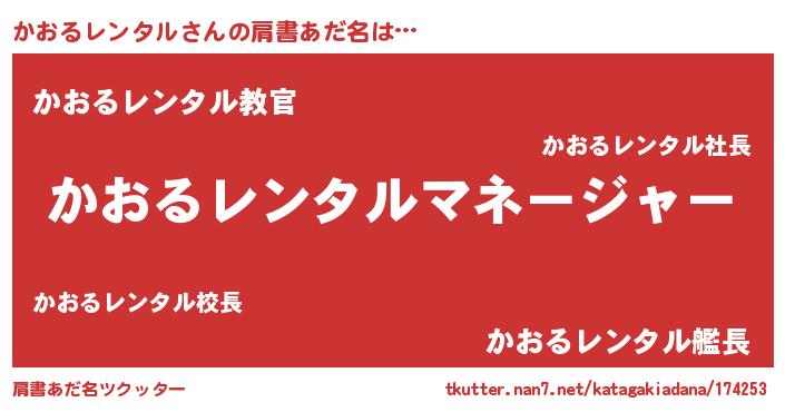 | 男性向けラノベタイトル風あだ名 | 『かおるレンタルに滅ぼされるだけの簡単なお仕事です』 |