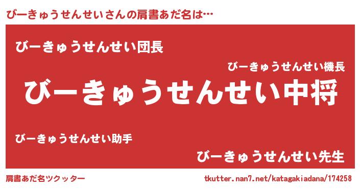 | ヘコむあだ名 | 『びーっちょ』『びーきゅうせんせい(笑)』 |