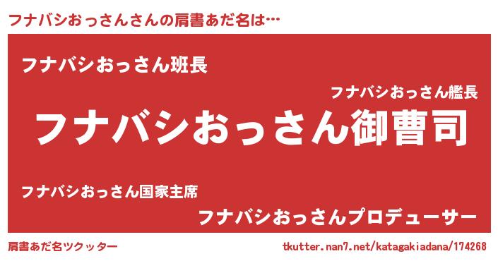 | ヘコむあだ名 | 『フナっふぃ~』『フナを』 |