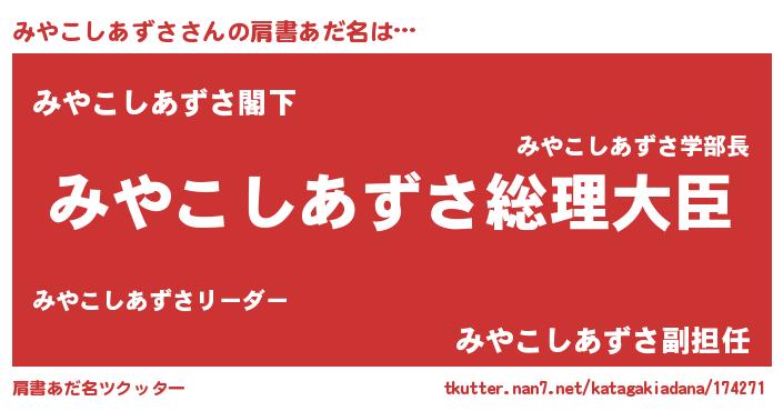 | 女子向けラノベタイトル風あだ名 | 『みやこしあずさの雑貨屋さん』 |