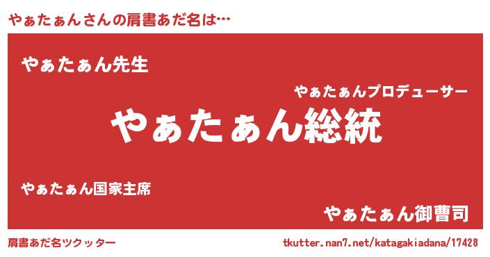 | ヒーロー風カッコイイあだ名 | 『ウルトラ戦士ヤァタァン』 |