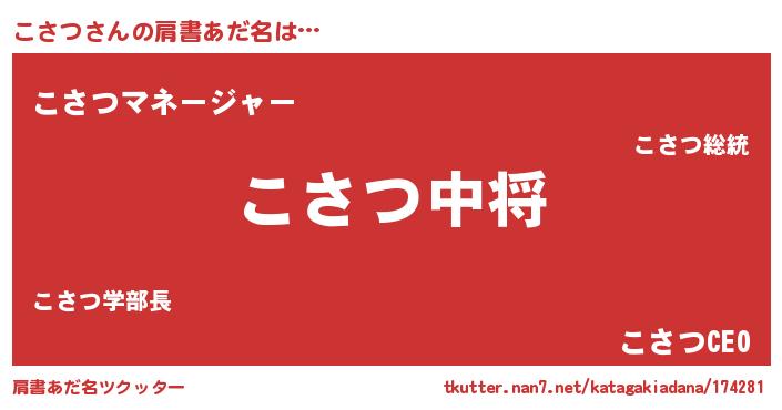 | ヒーロー風カッコイイあだ名 | 『スーパーコサツ』『最強戦士コサツ』 |