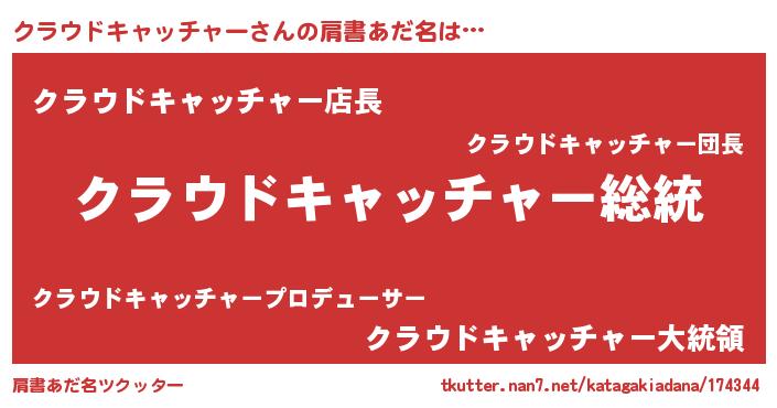 | 男性向けラノベタイトル風あだ名 | 『Re:クラウドキャッチャーから始める異世界生活』 |
