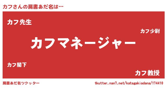 | ヘコむあだ名 | 『カフ(小並感)』『カフを』『牛乳』 |