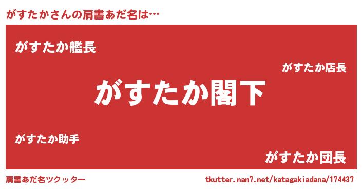 | 胡散臭い通販商品みたいなあだ名 | 『テレビで話題の高麗人参…その名も「がすたか」』 |