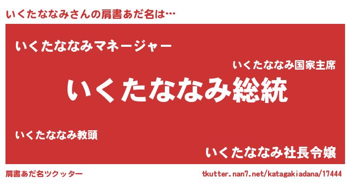 | 男性向けラノベタイトル風あだ名 | 『Re:いくたななみから始める異世界生活』 |