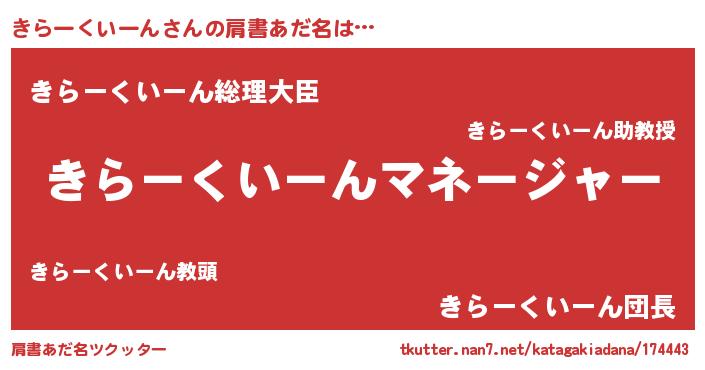 | 意味不明あだ名 | 『きらーくいーんフォーエバー』 |