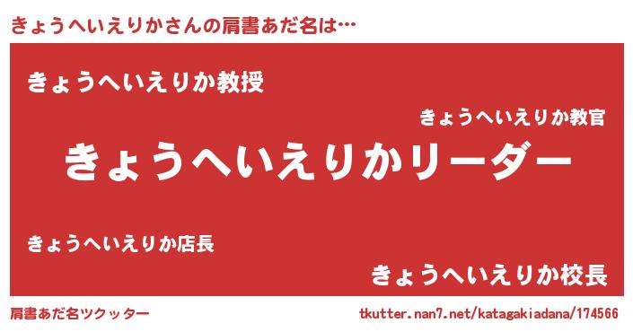 | 男性向けラノベタイトル風あだ名 | 『きょうへいえりかの嫁は女の子じゃないと思った?』 |