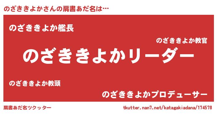 | 男性向けラノベタイトル風あだ名 | 『のざききよかの嫁は女の子じゃないと思った?』 |