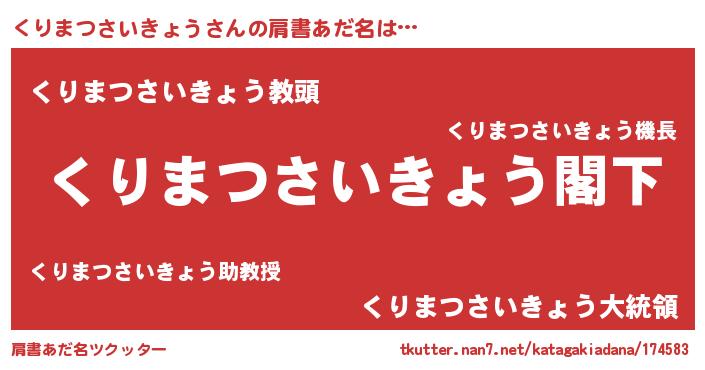 | 意味不明あだ名 | 『自称くりまつさいきょう』 |