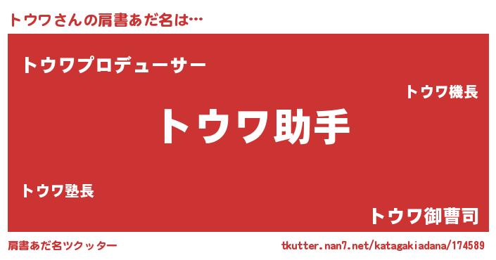 | ヒーロー風カッコイイあだ名 | 『慈愛の使者トウワ』『スーパートウワ』 |