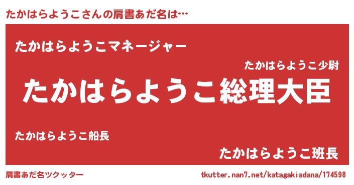 | 意味不明あだ名 | 『たかはらようこフォーエバー』 |