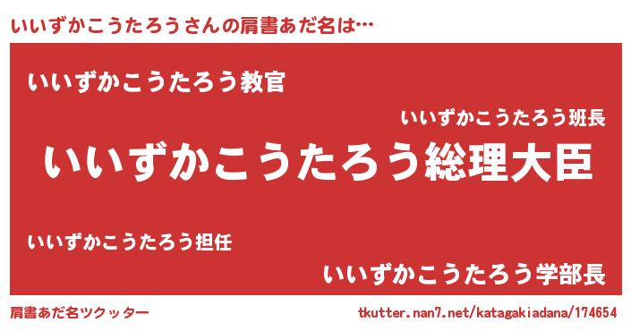 | 男性向けラノベタイトル風あだ名 | 『やはりいいずかこうたろうの青春ラブコメはまちがっている 』 |