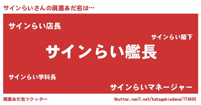 | 意味不明あだ名 | 『ペロリンサインらい』『自称サインらい』 |
