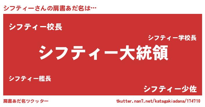 | ポケモン風あだ名 | 『シフテダネ』『ゼニシフ』 |