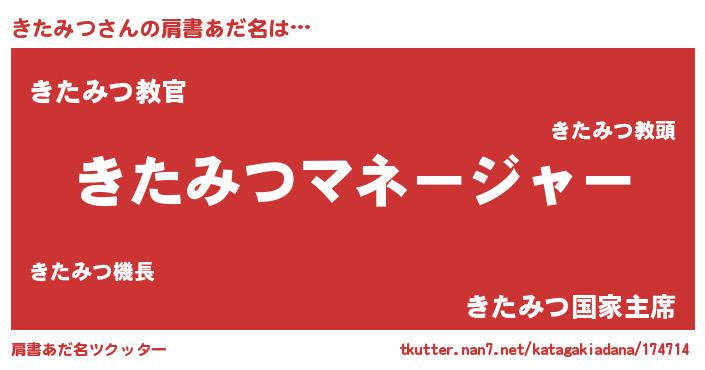 | 男性向けラノベタイトル風あだ名 | 『きたみつに滅ぼされるだけの簡単なお仕事です』 |