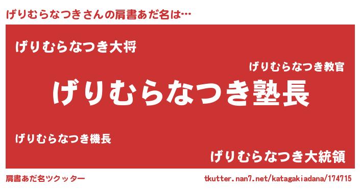 | ポケモン風あだ名 | 『ヒゲリムラナツキ』『ゲリキング』 |