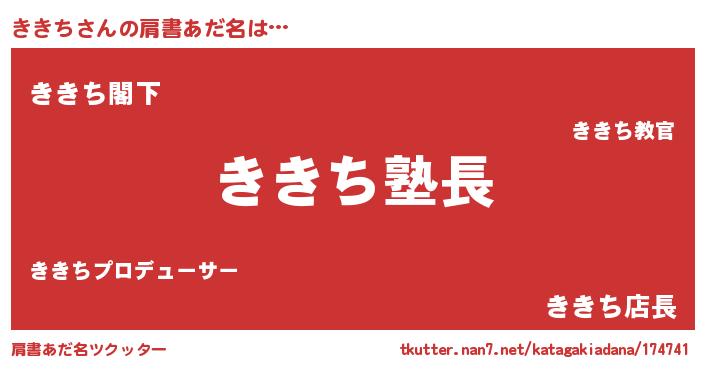 | 意味不明あだ名 | 『とにかく怪しいききち』『自称ききち』 |