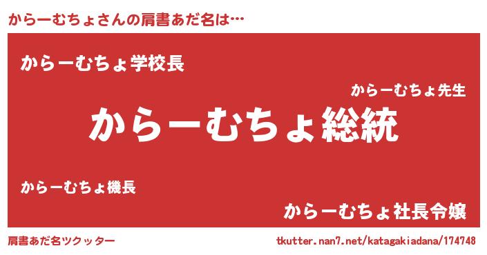 | 意味不明あだ名 | 『自称からーむちょ』 |