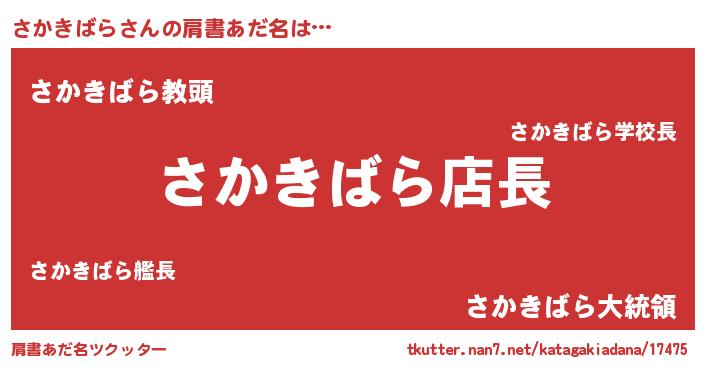 | ヘコむあだ名 | 『さかにゅー』『さかきばら(笑)』 |