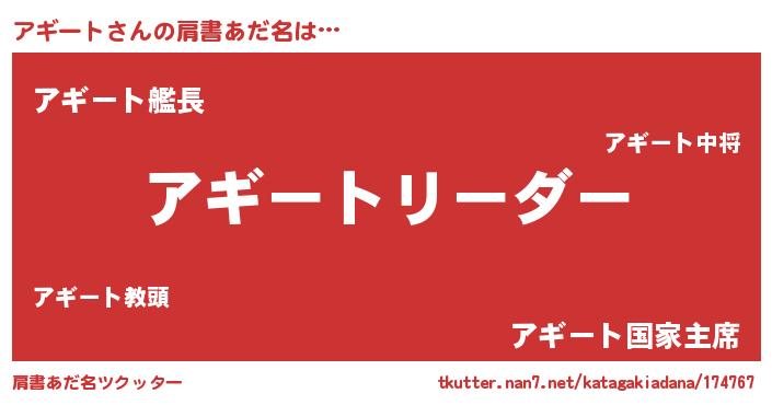 | ファンタジー風あだ名 | 『ファントムアギス』『カークアギラー』 |