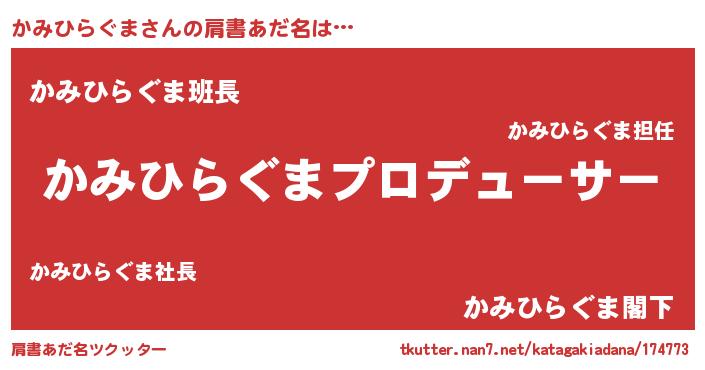 | 欧米人風あだ名 | 『アンジェラ・かみひらぐま』 |