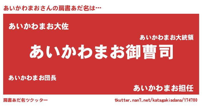 | 胡散臭い通販商品みたいなあだ名 | 『必ず成功する霊験あらたかなお札…その名も「あいかわまお」』 |