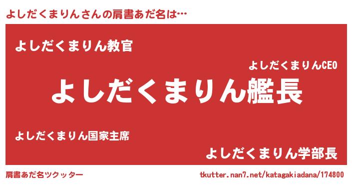 | 男性向けラノベタイトル風あだ名 | 『緋弾のヨシダクマリン』 |