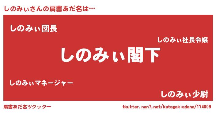 | 男性向けラノベタイトル風あだ名 | 『Re:しのみぃから始める異世界生活』 |