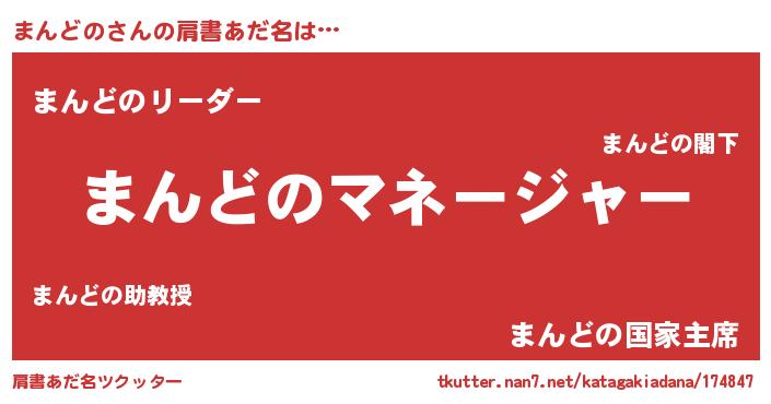 | 意味不明あだ名 | 『とにかく怪しいまんどの』 |