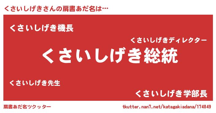 | 意味不明あだ名 | 『自称くさいしげき』 |
